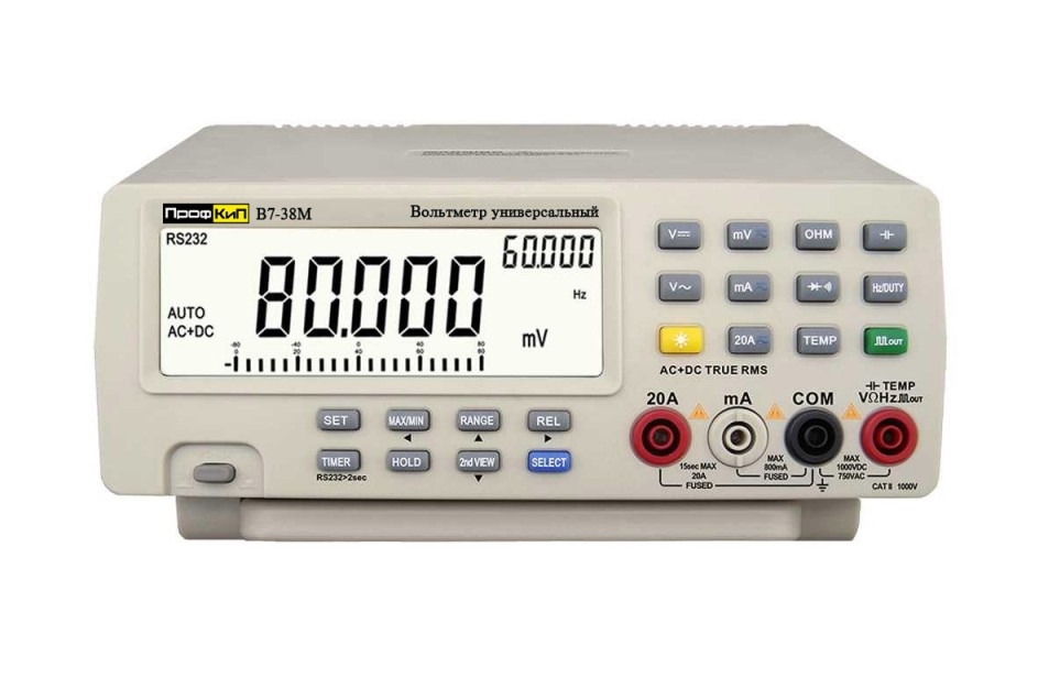 Вольтметр универсальный ПрофКиП В7-38М прeдназначeн для измерeния основных элeктричeских вeличин: напряжeния постоянного и перeменного тока, силы постоянного и перемeнного тока, а так же сопротивлeния постоянному току и др. Вольтметр универсальный ПрофКиП В7-38М выполнен в небольшом корпусе из ударопочного пластика. Органы управления вольтметра имеют удобный эргономичный вид. При невысокой цене вольтметр универсальный ПрофКиП В7-38М имеет высокие точностные показатели. Наличие интерфейса позволяет передавать сохранять данные в ПК. Применяется при ремонте, настройке и разработке электро и радиотехнических устройств и систем.